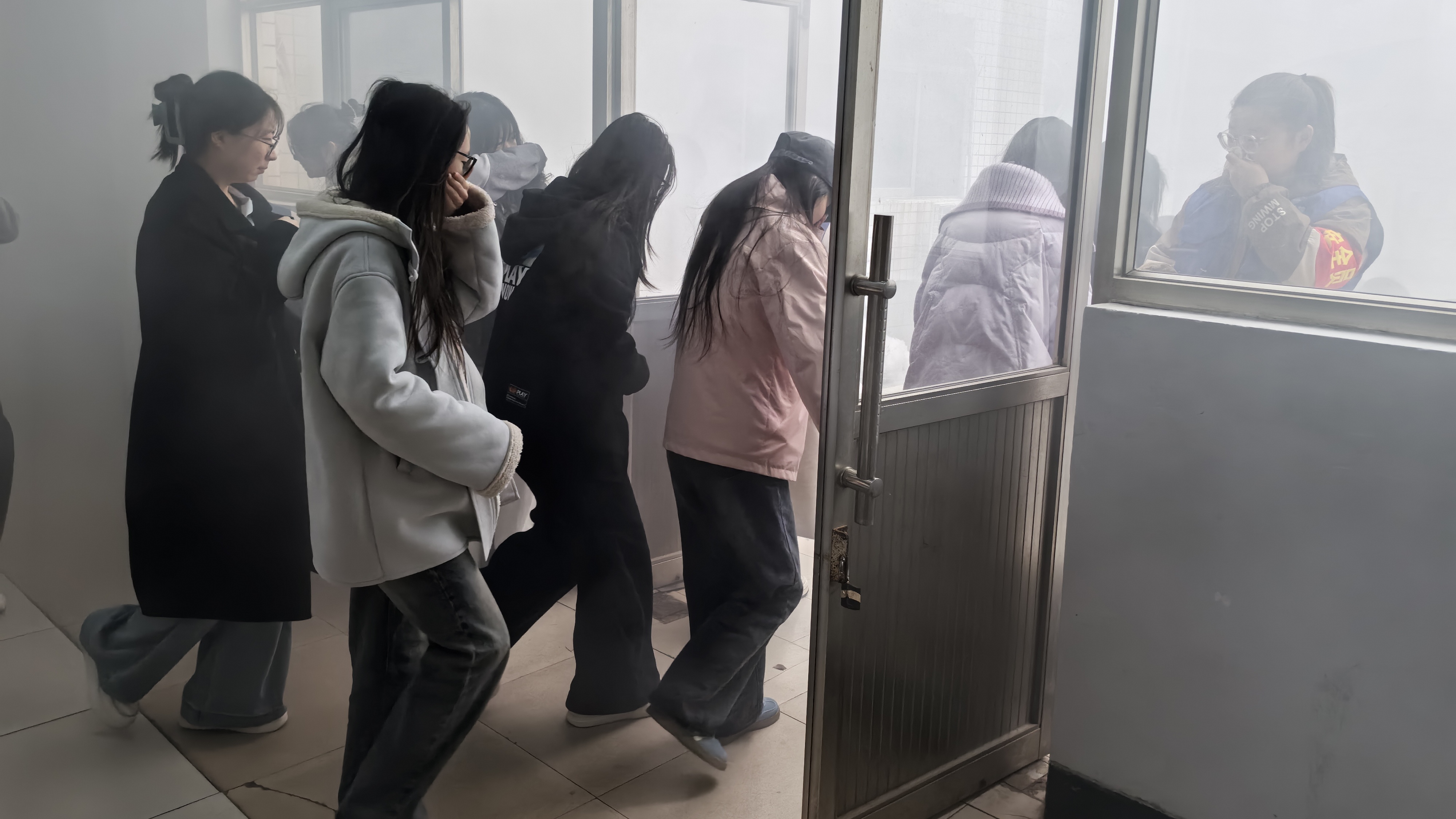 安全员郭继鹏首先强调了引导员的职责和要求,接着朱震杰宣布演练开始,全体人员立即就位,随着消防警报拉响,演练正式拉开帷幕。预先部署的烟雾模拟装置释放出逼真浓烟,随着浓烟弥漫,警笛声鸣响,各楼层同学们在老师和引导员的组织下低头弯腰,捂住口鼻,靠楼梯右侧安全撤离,并疏散至指定安全地点进行集合。整个演练过程紧张有序,同学们严格遵守演练要求,行动迅速而不慌乱,展现出高效的应急响应能力。活动最后,朱震杰针对此次应急疏散逃生演练进行总结,他充分肯定了同学们在演练中的优秀表现,提醒同学们要时刻把安全牢记于心,紧守安全底线,做好日常防范,共同营造一个更加安全、和谐的学习生活环境。