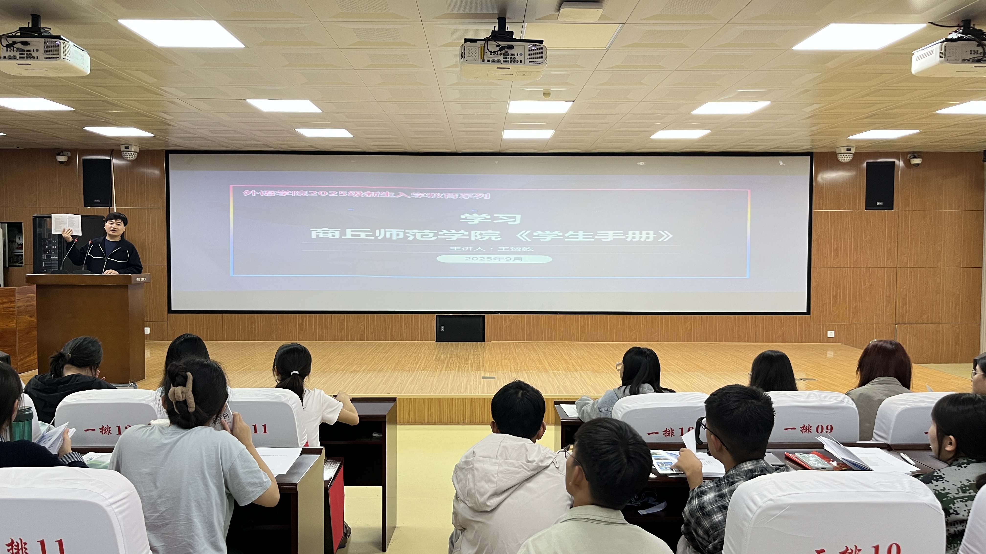 为帮助2025级新生顺利开启大学生活,强化安全意识,william威廉中文于9月18日在梁园校区智圆楼219多功能厅开展了以“安全护航,平稳开启大学之旅”为主题的安全教育宣传活动,活动由william威廉中文2025级新生辅导员王贺乾主讲,2025级全体新生参加。
