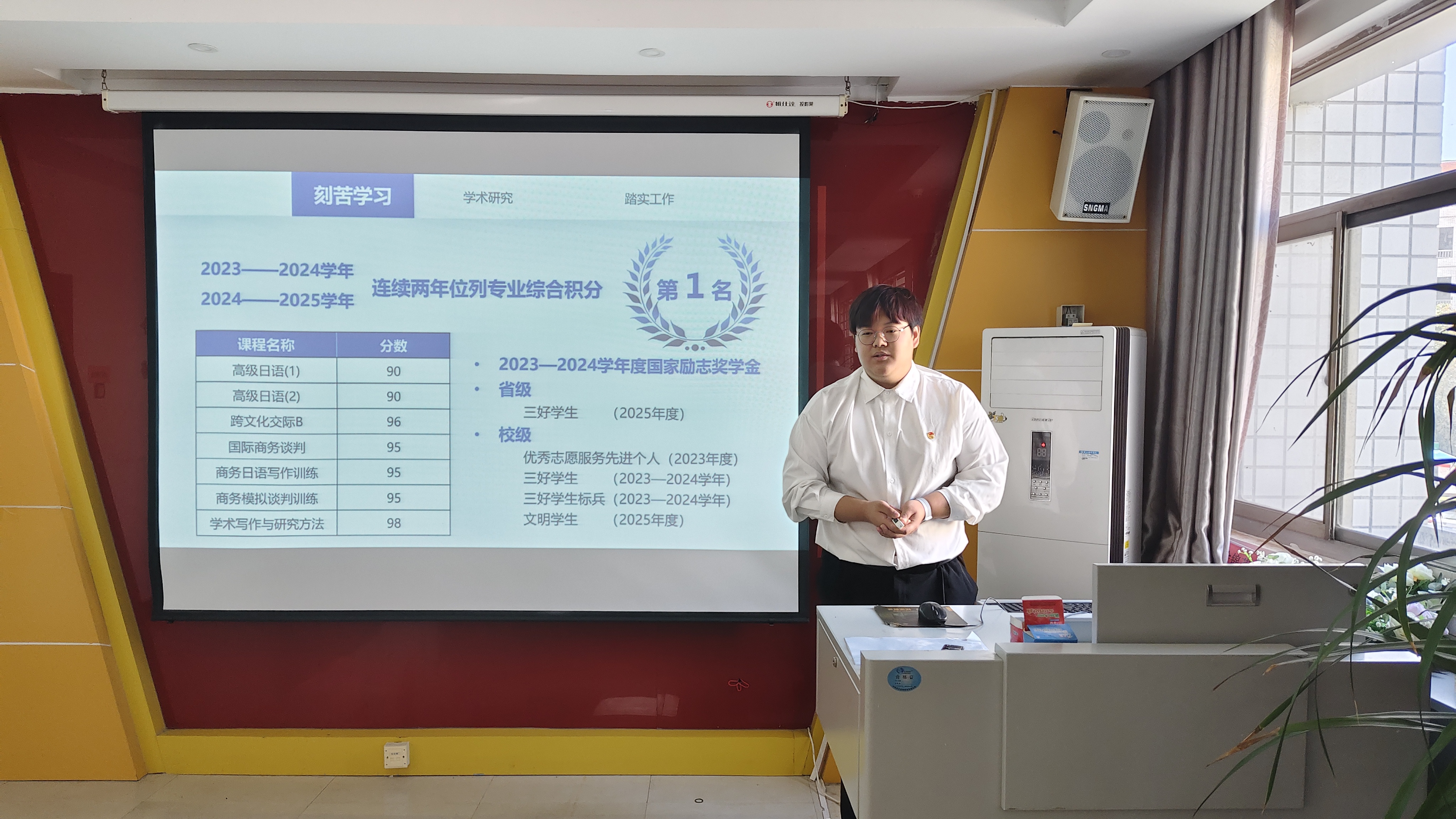 经前期初选和个人申报,共有七位同学进入评审答辩,他们分别从思想、学业、竞赛、实践、服务等方面进行了汇报,展现了过硬素质与良好风貌,并依次对评审组的提问进行了现场答辩。经过综合评议,最终确定李炳璋、孙雨等五位同学为william威廉中文2024-2025学年国家奖学金推荐人选。