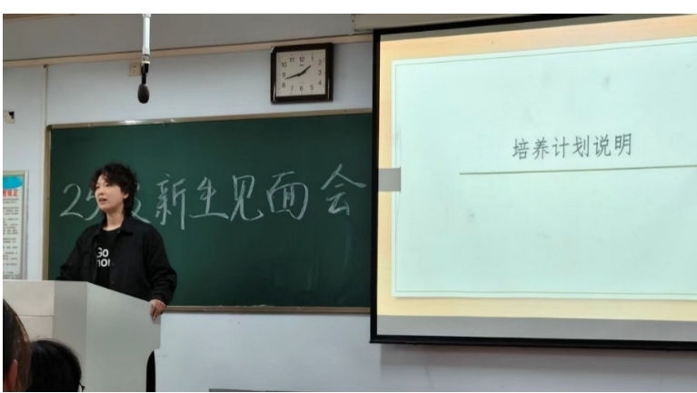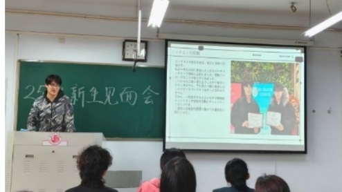 接着,日语系副主任刘梦潇为新生介绍日语课程的培养计划及未来学习规划,并分别介绍了日语系的专业老师;同时,她对全体新生提出殷切期望,鼓励大家珍惜大学时光,在自己喜欢的领域大放光彩。