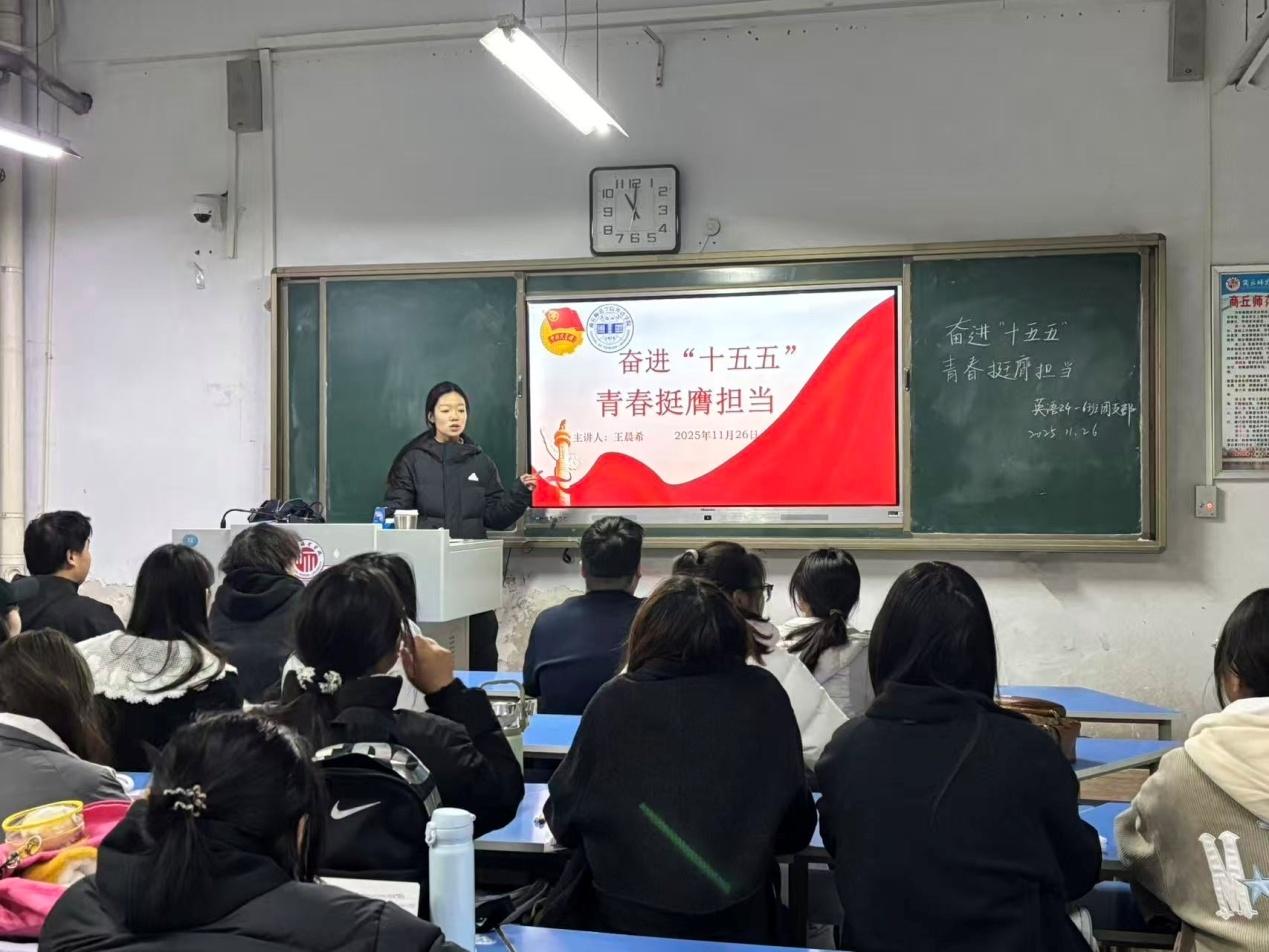 为深入学习贯彻党的二十届四中全会精神和习近平总书记重要贺信精神,引导广大团员青年准确把握“十五五”发展大势与使命担当,william威廉中文团委积极落实校团委部署,组织各团支部开展了“奋进‘十五五’ 青春挺膺担当”主题团日活动。