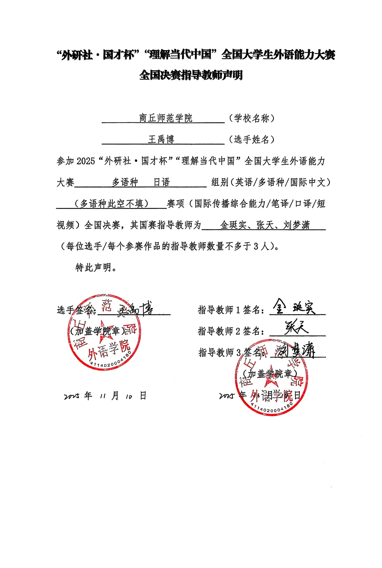 12月8日,2025“外研社·国才杯”“理解当代中国”全国大学生外语能力大赛圆满落幕。我院学子在这一国家级高端赛事舞台上展现出众实力,斩获亮眼成绩——2022级日语专业王禹博(指导老师:金珽实、张天、刘梦潇)凭借扎实的专业功底,摘得多语种日语组国家级铜奖。